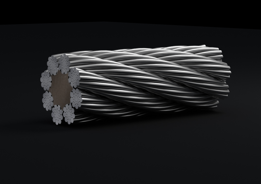 鋼絲繩由多根鋼絲按照一定的規則捻制而成的繩索。由制繩鋼絲、繩股、繩芯和繩用油脂組成。